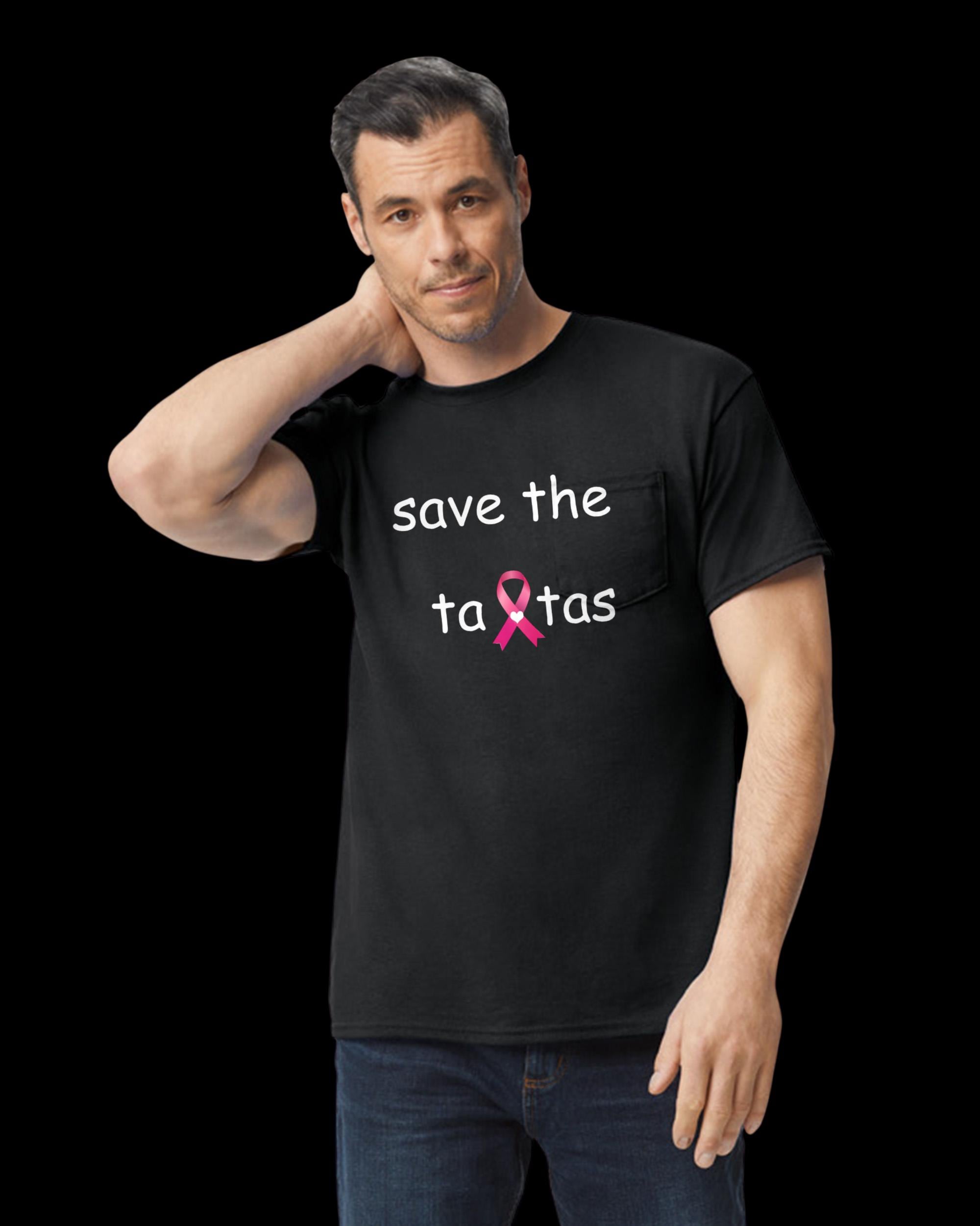 🎀 **Save the Tata’s Breast Cancer Awareness Tee** Bold, cheeky, and beautifully supportive—this black tee makes a statement that’s impossible to ignore. The front features the playful phrase *“save the tata’s”* in vibrant pink, with a pink ribbon cleverly tucked into the typography as a symbol of strength and solidarity. On the back, a gentle reminder: *“Breast Cancer Awareness”* flanked by twin pink ribbons, honoring the fighters, survivors, and loved ones we hold close.